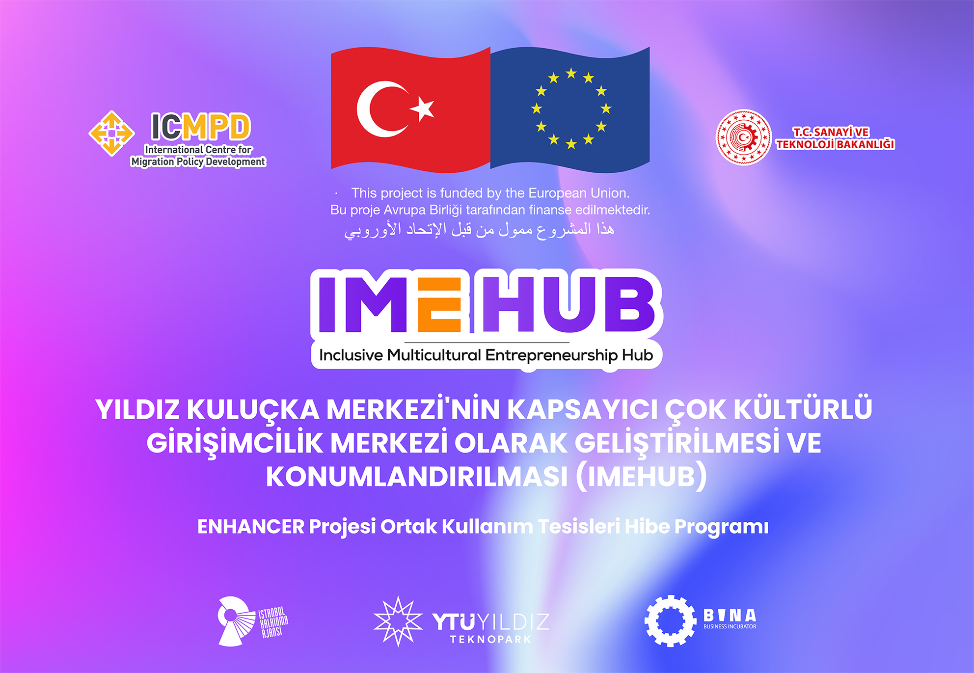 IMEHub hızlandırma programı, Avrupa Birliği'nin Uluslararası Göç Politikaları Geliştirme Merkezi (ICMPD) tarafından fonlanan, T.C Sanayi ve Teknoloji Bakanlığı ve İstanbul Kalkınma Ajansı koordinasyonuyla yürütülen bir ENHANCER projesidir. IMEHub, Türkiye’de geçici koruma altında bulunan Suriyelilere ve yerel topluluğa, eğitim, mentorluk ve danışmanlıklar aracılığıyla, katkıda bulunmayı hedeflemektedir.