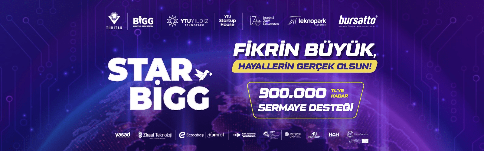 StarBİGG Programı, TÜBİTAK 1812 - Yatırım Tabanlı Girişimcilik Destek Programı (BİGG Yatırım) Uygulayıcı Kuruluşu olarak YTÜ Yıldız Teknopark öncülüğünde ve İstanbul Sabahattin Zaim Üniversitesi, Çanakkale Teknopark, Bursa Teknik Üniversitesi TTO ve Akbank’ın ortaklığıyla oluşturduğumuz sektörel ve akademik anlamda güçlü konsorsiyum ile yürütülen teknoloji ve yenilik odaklı iş fikirlerini nitelikli iş planlarına dönüştürmek ve TÜBİTAK tarafından uygun bulunan girişimcilere TÜBİTAK BİGG Fonu ile %3 hisse karşılığında 900.000 TL’ye kadar sermaye desteği ile şirketleşmelerine olanak tanımak üzere tasarlanmış bir programdır. StarBİGG Programı, girişimcilerin fikir aşamasından pazara kadar olan tüm süreçlerini destekleyerek, yüksek katma değer ve nitelikli istihdam yaratma potansiyeli olan teknoloji tabanlı girişimlerin kurulmasını hedefler.